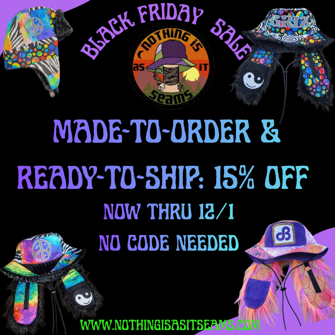 Our new Boonie Hats offer a 1'' longer brim for sun coverage and a 'Wook Wrangler' snap-up option for night time dancing. Plus, they've got ear buttonholes-chinstrap-stash pocket just like our buckets.