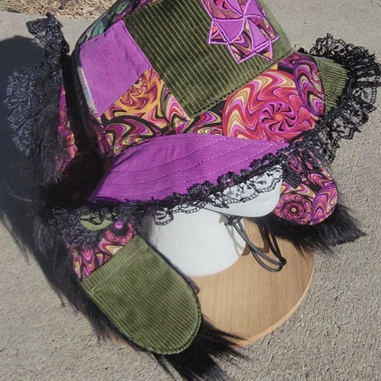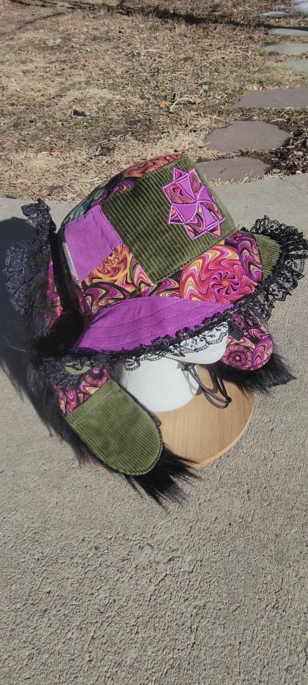 Bunny ears made with black faux fur & 2 added pockets (1 with zipper)