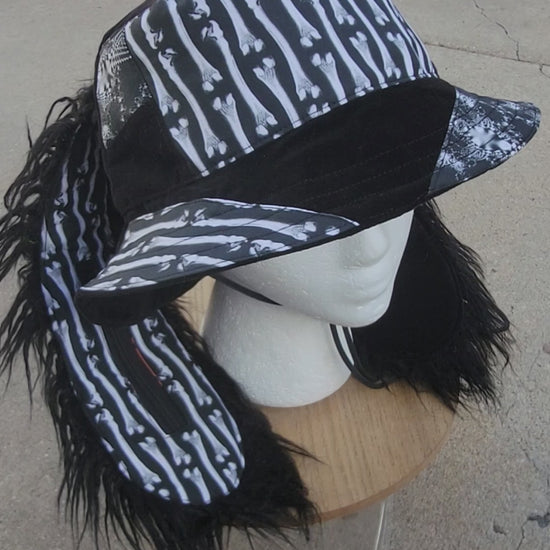 Bunny ears made with black faux fur & 2 added pockets (1 with zipper)