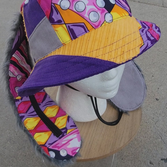 Bunny ears made with gray faux fur & 2 added pockets (1 with zipper)