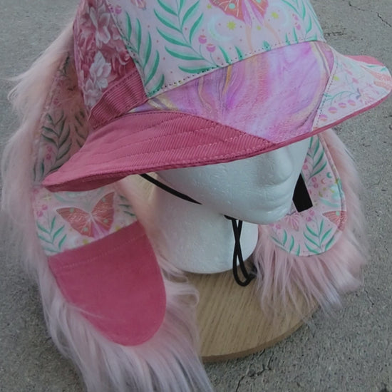 Bunny ears made with light pink faux fur & 2 added pockets (1 with zipper)