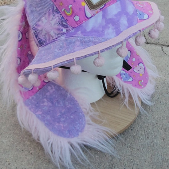 Pink poof trim added to brim
