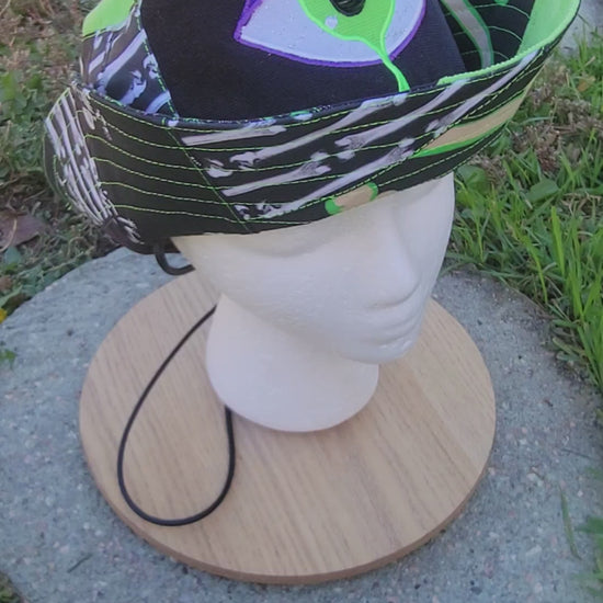 Patchwork underbrim, with snap buttons to keep brim in place