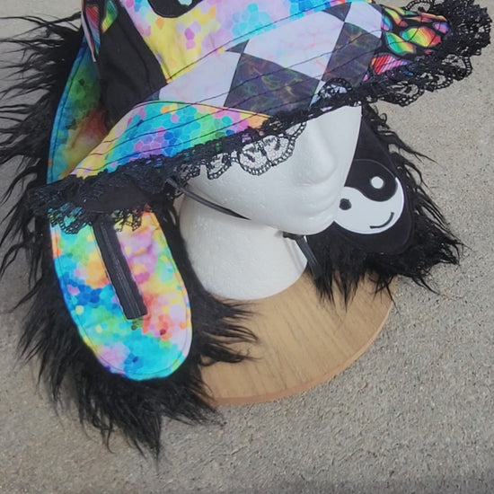 Bunny ears made with black faux fur & 2 added pockets (1 with zipper)