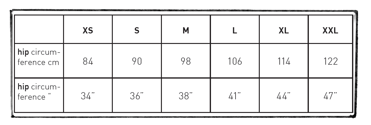SIZING CHART IS BASED OFF HIP MEASUREMENTS (not waist!)