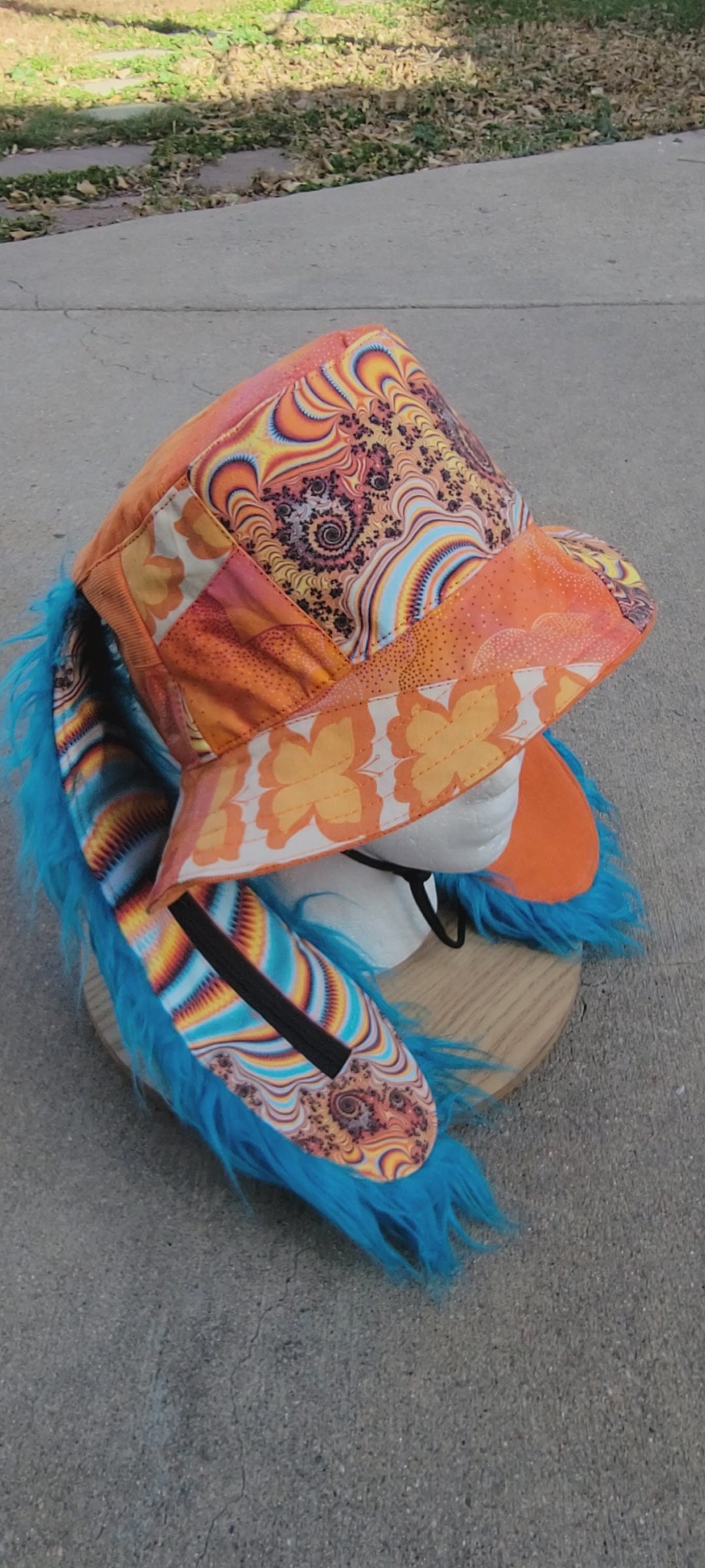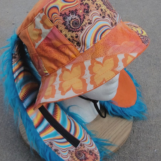 Bunny ears made with blue faux fur & 2 added pockets (1 with zipper)