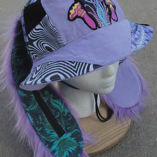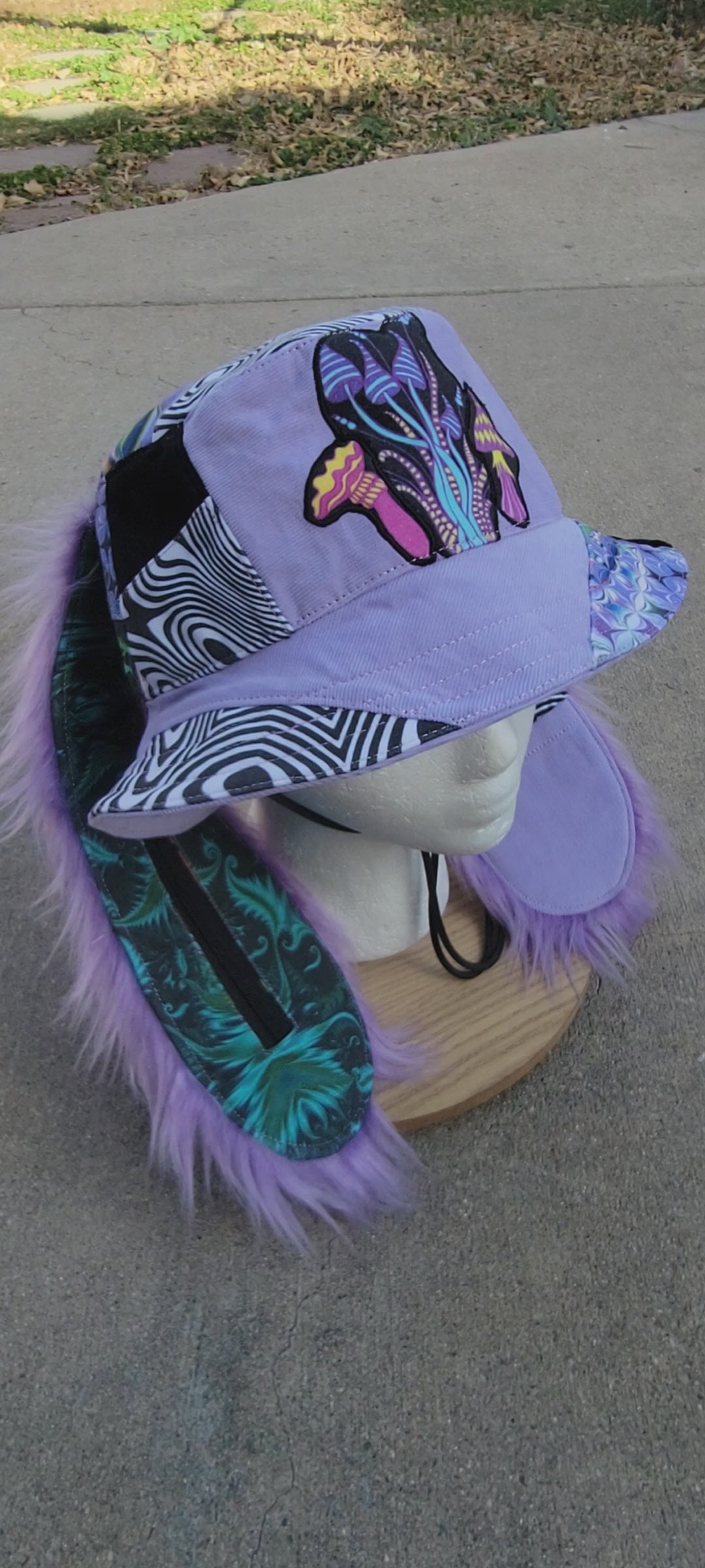 Bunny ears made with lavender faux fur & 2 added pockets (1 with zipper)