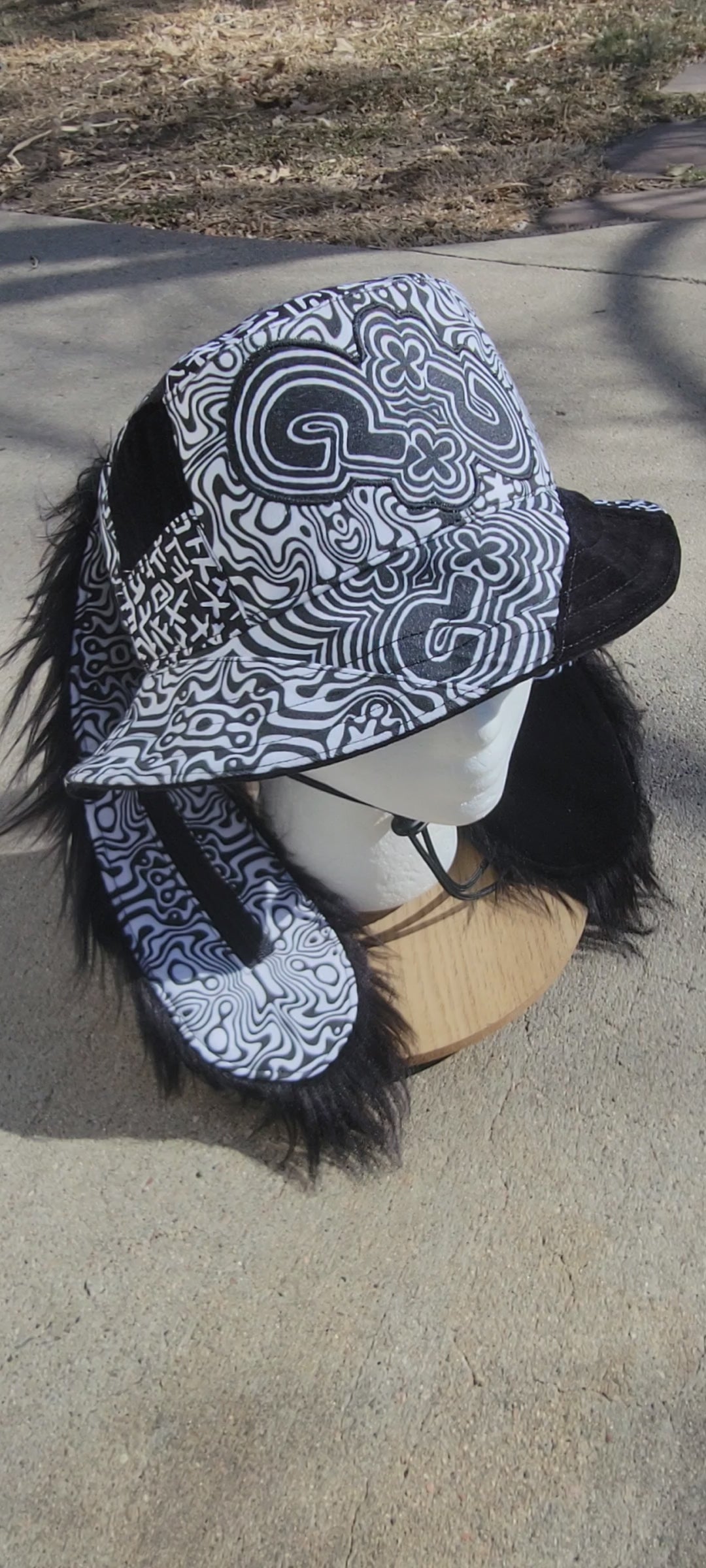 Bunny ears made with black faux fur & 2 added pockets (1 with zipper)